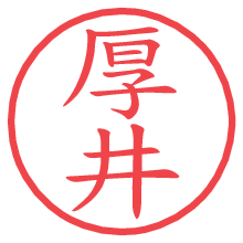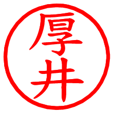 [朱肉の色]を選び、入力窓に“厚井”と入力して[生成]ボタンを押すと、印影が更新され、リンクから電子印鑑(デジタル印影)がダウンロードできます。 電子印鑑「厚井」の作り方文字表示が変なときや、文字バランスが悪いときは[字形切替]のチェックボックスでON/OFFを切り替え[生成]しなおしてください。 生成される画像は通常の印影「厚井.png」と、にじみを表現した少し太めの印影「厚井B.png」の背面透過PNG形式2種と、鮮明なPDF形式の印影「厚井.pdf」の計3種類です。 朱肉の微妙な色の違いを7色で表現しました。デフォルト(左端)は、JISが定めた朱肉の色のマンセル値(7.5R 5/14)をRGB値(217,66,54)に変換したものになっています。 「電子透かし」にチェックを入れて[生成]ボタンを押すと、タイムスタンプを電子透かしとして埋め込んだセキュアな電子印鑑が作れます。詳細は別ページの「タイムスタンプと電子透かし」でご覧ください。 厚井さんの日付印が作れます。「日付スタンプメーカー」は、社内向けの書類に利用されることの多い日付印(データ印)が無料で作れるWebアプリケーションです。中段に日付が入り、上段と下段は、ともに8文字まで文字が入ります。 ![]() 古代文字で落款印が作れます。「落款スタンプメーカー」で作品を引き立たせる落款印が作れます。