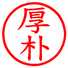 [朱肉の色]を選び、入力窓に“厚朴”と入力して[生成]ボタンを押すと、印影が更新され、リンクから電子印鑑(デジタル印影)がダウンロードできます。 電子印鑑「厚朴」の作り方文字表示が変なときや、文字バランスが悪いときは[字形切替]のチェックボックスでON/OFFを切り替え[生成]しなおしてください。 生成される画像は通常の印影「厚朴.png」と、にじみを表現した少し太めの印影「厚朴B.png」の背面透過PNG形式2種と、鮮明なPDF形式の印影「厚朴.pdf」の計3種類です。 朱肉の微妙な色の違いを7色で表現しました。デフォルト(左端)は、JISが定めた朱肉の色のマンセル値(7.5R 5/14)をRGB値(217,66,54)に変換したものになっています。 「電子透かし」にチェックを入れて[生成]ボタンを押すと、タイムスタンプを電子透かしとして埋め込んだセキュアな電子印鑑が作れます。詳細は別ページの「タイムスタンプと電子透かし」でご覧ください。 厚朴さんの日付印が作れます。「日付スタンプメーカー」は、社内向けの書類に利用されることの多い日付印(データ印)が無料で作れるWebアプリケーションです。中段に日付が入り、上段と下段は、ともに8文字まで文字が入ります。 ![]() 古代文字で落款印が作れます。「落款スタンプメーカー」で作品を引き立たせる落款印が作れます。