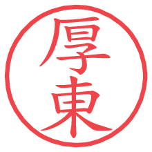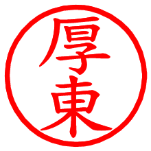 [朱肉の色]を選び、入力窓に“厚東”と入力して[生成]ボタンを押すと、印影が更新され、リンクから電子印鑑(デジタル印影)がダウンロードできます。 電子印鑑「厚東」の作り方文字表示が変なときや、文字バランスが悪いときは[字形切替]のチェックボックスでON/OFFを切り替え[生成]しなおしてください。 生成される画像は通常の印影「厚東.png」と、にじみを表現した少し太めの印影「厚東B.png」の背面透過PNG形式2種と、鮮明なPDF形式の印影「厚東.pdf」の計3種類です。 朱肉の微妙な色の違いを7色で表現しました。デフォルト(左端)は、JISが定めた朱肉の色のマンセル値(7.5R 5/14)をRGB値(217,66,54)に変換したものになっています。 「電子透かし」にチェックを入れて[生成]ボタンを押すと、タイムスタンプを電子透かしとして埋め込んだセキュアな電子印鑑が作れます。詳細は別ページの「タイムスタンプと電子透かし」でご覧ください。 厚東さんの日付印が作れます。「日付スタンプメーカー」は、社内向けの書類に利用されることの多い日付印(データ印)が無料で作れるWebアプリケーションです。中段に日付が入り、上段と下段は、ともに8文字まで文字が入ります。 ![]() 古代文字で落款印が作れます。「落款スタンプメーカー」で作品を引き立たせる落款印が作れます。