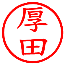 [朱肉の色]を選び、入力窓に“厚田”と入力して[生成]ボタンを押すと、印影が更新され、リンクから電子印鑑(デジタル印影)がダウンロードできます。 電子印鑑「厚田」の作り方文字表示が変なときや、文字バランスが悪いときは[字形切替]のチェックボックスでON/OFFを切り替え[生成]しなおしてください。 生成される画像は通常の印影「厚田.png」と、にじみを表現した少し太めの印影「厚田B.png」の背面透過PNG形式2種と、鮮明なPDF形式の印影「厚田.pdf」の計3種類です。 朱肉の微妙な色の違いを7色で表現しました。デフォルト(左端)は、JISが定めた朱肉の色のマンセル値(7.5R 5/14)をRGB値(217,66,54)に変換したものになっています。 「電子透かし」にチェックを入れて[生成]ボタンを押すと、タイムスタンプを電子透かしとして埋め込んだセキュアな電子印鑑が作れます。詳細は別ページの「タイムスタンプと電子透かし」でご覧ください。 厚田さんの日付印が作れます。「日付スタンプメーカー」は、社内向けの書類に利用されることの多い日付印(データ印)が無料で作れるWebアプリケーションです。中段に日付が入り、上段と下段は、ともに8文字まで文字が入ります。 ![]() 古代文字で落款印が作れます。「落款スタンプメーカー」で作品を引き立たせる落款印が作れます。