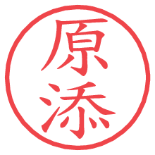 [朱肉の色]を選び、入力窓に“原添”と入力して[生成]ボタンを押すと、印影が更新され、リンクから電子印鑑(デジタル印影)がダウンロードできます。 電子印鑑「原添」の作り方文字表示が変なときや、文字バランスが悪いときは[字形切替]のチェックボックスでON/OFFを切り替え[生成]しなおしてください。 生成される画像は通常の印影「原添.png」と、にじみを表現した少し太めの印影「原添B.png」の背面透過PNG形式2種と、鮮明なPDF形式の印影「原添.pdf」の計3種類です。 朱肉の微妙な色の違いを7色で表現しました。デフォルト(左端)は、JISが定めた朱肉の色のマンセル値(7.5R 5/14)をRGB値(217,66,54)に変換したものになっています。 「電子透かし」にチェックを入れて[生成]ボタンを押すと、タイムスタンプを電子透かしとして埋め込んだセキュアな電子印鑑が作れます。詳細は別ページの「タイムスタンプと電子透かし」でご覧ください。 原添さんの日付印が作れます。「日付スタンプメーカー」は、社内向けの書類に利用されることの多い日付印(データ印)が無料で作れるWebアプリケーションです。中段に日付が入り、上段と下段は、ともに8文字まで文字が入ります。 ![]() 古代文字で落款印が作れます。「落款スタンプメーカー」で作品を引き立たせる落款印が作れます。