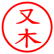 [朱肉の色]を選び、入力窓に“又木”と入力して[生成]ボタンを押すと、印影が更新され、リンクから電子印鑑(デジタル印影)がダウンロードできます。 電子印鑑「又木」の作り方文字表示が変なときや、文字バランスが悪いときは[字形切替]のチェックボックスでON/OFFを切り替え[生成]しなおしてください。 生成される画像は通常の印影「又木.png」と、にじみを表現した少し太めの印影「又木B.png」の背面透過PNG形式2種と、鮮明なPDF形式の印影「又木.pdf」の計3種類です。 朱肉の微妙な色の違いを7色で表現しました。デフォルト(左端)は、JISが定めた朱肉の色のマンセル値(7.5R 5/14)をRGB値(217,66,54)に変換したものになっています。 「電子透かし」にチェックを入れて[生成]ボタンを押すと、タイムスタンプを電子透かしとして埋め込んだセキュアな電子印鑑が作れます。詳細は別ページの「タイムスタンプと電子透かし」でご覧ください。 又木さんの日付印が作れます。「日付スタンプメーカー」は、社内向けの書類に利用されることの多い日付印(データ印)が無料で作れるWebアプリケーションです。中段に日付が入り、上段と下段は、ともに8文字まで文字が入ります。 ![]() 古代文字で落款印が作れます。「落款スタンプメーカー」で作品を引き立たせる落款印が作れます。