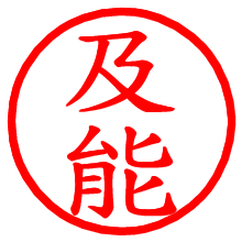 [朱肉の色]を選び、入力窓に“及能”と入力して[生成]ボタンを押すと、印影が更新され、リンクから電子印鑑(デジタル印影)がダウンロードできます。 電子印鑑「及能」の作り方文字表示が変なときや、文字バランスが悪いときは[字形切替]のチェックボックスでON/OFFを切り替え[生成]しなおしてください。 生成される画像は通常の印影「及能.png」と、にじみを表現した少し太めの印影「及能B.png」の背面透過PNG形式2種と、鮮明なPDF形式の印影「及能.pdf」の計3種類です。 朱肉の微妙な色の違いを7色で表現しました。デフォルト(左端)は、JISが定めた朱肉の色のマンセル値(7.5R 5/14)をRGB値(217,66,54)に変換したものになっています。 「電子透かし」にチェックを入れて[生成]ボタンを押すと、タイムスタンプを電子透かしとして埋め込んだセキュアな電子印鑑が作れます。詳細は別ページの「タイムスタンプと電子透かし」でご覧ください。 及能さんの日付印が作れます。「日付スタンプメーカー」は、社内向けの書類に利用されることの多い日付印(データ印)が無料で作れるWebアプリケーションです。中段に日付が入り、上段と下段は、ともに8文字まで文字が入ります。 ![]() 古代文字で落款印が作れます。「落款スタンプメーカー」で作品を引き立たせる落款印が作れます。