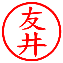 [朱肉の色]を選び、入力窓に“友井”と入力して[生成]ボタンを押すと、印影が更新され、リンクから電子印鑑(デジタル印影)がダウンロードできます。 電子印鑑「友井」の作り方文字表示が変なときや、文字バランスが悪いときは[字形切替]のチェックボックスでON/OFFを切り替え[生成]しなおしてください。 生成される画像は通常の印影「友井.png」と、にじみを表現した少し太めの印影「友井B.png」の背面透過PNG形式2種と、鮮明なPDF形式の印影「友井.pdf」の計3種類です。 朱肉の微妙な色の違いを7色で表現しました。デフォルト(左端)は、JISが定めた朱肉の色のマンセル値(7.5R 5/14)をRGB値(217,66,54)に変換したものになっています。 「電子透かし」にチェックを入れて[生成]ボタンを押すと、タイムスタンプを電子透かしとして埋め込んだセキュアな電子印鑑が作れます。詳細は別ページの「タイムスタンプと電子透かし」でご覧ください。 友井さんの日付印が作れます。「日付スタンプメーカー」は、社内向けの書類に利用されることの多い日付印(データ印)が無料で作れるWebアプリケーションです。中段に日付が入り、上段と下段は、ともに8文字まで文字が入ります。 ![]() 古代文字で落款印が作れます。「落款スタンプメーカー」で作品を引き立たせる落款印が作れます。