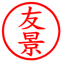 [朱肉の色]を選び、入力窓に“友景”と入力して[生成]ボタンを押すと、印影が更新され、リンクから電子印鑑(デジタル印影)がダウンロードできます。 電子印鑑「友景」の作り方文字表示が変なときや、文字バランスが悪いときは[字形切替]のチェックボックスでON/OFFを切り替え[生成]しなおしてください。 生成される画像は通常の印影「友景.png」と、にじみを表現した少し太めの印影「友景B.png」の背面透過PNG形式2種と、鮮明なPDF形式の印影「友景.pdf」の計3種類です。 朱肉の微妙な色の違いを7色で表現しました。デフォルト(左端)は、JISが定めた朱肉の色のマンセル値(7.5R 5/14)をRGB値(217,66,54)に変換したものになっています。 「電子透かし」にチェックを入れて[生成]ボタンを押すと、タイムスタンプを電子透かしとして埋め込んだセキュアな電子印鑑が作れます。詳細は別ページの「タイムスタンプと電子透かし」でご覧ください。 友景さんの日付印が作れます。「日付スタンプメーカー」は、社内向けの書類に利用されることの多い日付印(データ印)が無料で作れるWebアプリケーションです。中段に日付が入り、上段と下段は、ともに8文字まで文字が入ります。 ![]() 古代文字で落款印が作れます。「落款スタンプメーカー」で作品を引き立たせる落款印が作れます。