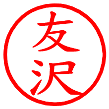 [朱肉の色]を選び、入力窓に“友沢”と入力して[生成]ボタンを押すと、印影が更新され、リンクから電子印鑑(デジタル印影)がダウンロードできます。 電子印鑑「友沢」の作り方文字表示が変なときや、文字バランスが悪いときは[字形切替]のチェックボックスでON/OFFを切り替え[生成]しなおしてください。 生成される画像は通常の印影「友沢.png」と、にじみを表現した少し太めの印影「友沢B.png」の背面透過PNG形式2種と、鮮明なPDF形式の印影「友沢.pdf」の計3種類です。 朱肉の微妙な色の違いを7色で表現しました。デフォルト(左端)は、JISが定めた朱肉の色のマンセル値(7.5R 5/14)をRGB値(217,66,54)に変換したものになっています。 「電子透かし」にチェックを入れて[生成]ボタンを押すと、タイムスタンプを電子透かしとして埋め込んだセキュアな電子印鑑が作れます。詳細は別ページの「タイムスタンプと電子透かし」でご覧ください。 友沢さんの日付印が作れます。「日付スタンプメーカー」は、社内向けの書類に利用されることの多い日付印(データ印)が無料で作れるWebアプリケーションです。中段に日付が入り、上段と下段は、ともに8文字まで文字が入ります。 ![]() 古代文字で落款印が作れます。「落款スタンプメーカー」で作品を引き立たせる落款印が作れます。