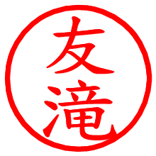 [朱肉の色]を選び、入力窓に“友滝”と入力して[生成]ボタンを押すと、印影が更新され、リンクから電子印鑑(デジタル印影)がダウンロードできます。 電子印鑑「友滝」の作り方文字表示が変なときや、文字バランスが悪いときは[字形切替]のチェックボックスでON/OFFを切り替え[生成]しなおしてください。 生成される画像は通常の印影「友滝.png」と、にじみを表現した少し太めの印影「友滝B.png」の背面透過PNG形式2種と、鮮明なPDF形式の印影「友滝.pdf」の計3種類です。 朱肉の微妙な色の違いを7色で表現しました。デフォルト(左端)は、JISが定めた朱肉の色のマンセル値(7.5R 5/14)をRGB値(217,66,54)に変換したものになっています。 「電子透かし」にチェックを入れて[生成]ボタンを押すと、タイムスタンプを電子透かしとして埋め込んだセキュアな電子印鑑が作れます。詳細は別ページの「タイムスタンプと電子透かし」でご覧ください。 友滝さんの日付印が作れます。「日付スタンプメーカー」は、社内向けの書類に利用されることの多い日付印(データ印)が無料で作れるWebアプリケーションです。中段に日付が入り、上段と下段は、ともに8文字まで文字が入ります。 ![]() 古代文字で落款印が作れます。「落款スタンプメーカー」で作品を引き立たせる落款印が作れます。