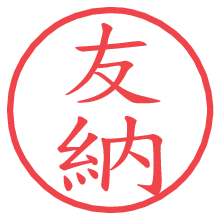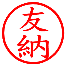 [朱肉の色]を選び、入力窓に“友納”と入力して[生成]ボタンを押すと、印影が更新され、リンクから電子印鑑(デジタル印影)がダウンロードできます。 電子印鑑「友納」の作り方文字表示が変なときや、文字バランスが悪いときは[字形切替]のチェックボックスでON/OFFを切り替え[生成]しなおしてください。 生成される画像は通常の印影「友納.png」と、にじみを表現した少し太めの印影「友納B.png」の背面透過PNG形式2種と、鮮明なPDF形式の印影「友納.pdf」の計3種類です。 朱肉の微妙な色の違いを7色で表現しました。デフォルト(左端)は、JISが定めた朱肉の色のマンセル値(7.5R 5/14)をRGB値(217,66,54)に変換したものになっています。 「電子透かし」にチェックを入れて[生成]ボタンを押すと、タイムスタンプを電子透かしとして埋め込んだセキュアな電子印鑑が作れます。詳細は別ページの「タイムスタンプと電子透かし」でご覧ください。 友納さんの日付印が作れます。「日付スタンプメーカー」は、社内向けの書類に利用されることの多い日付印(データ印)が無料で作れるWebアプリケーションです。中段に日付が入り、上段と下段は、ともに8文字まで文字が入ります。 ![]() 古代文字で落款印が作れます。「落款スタンプメーカー」で作品を引き立たせる落款印が作れます。