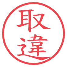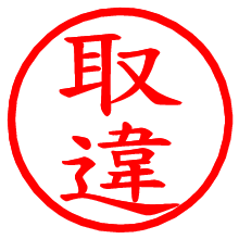[朱肉の色]を選び、入力窓に“取違”と入力して[生成]ボタンを押すと、印影が更新され、リンクから電子印鑑(デジタル印影)がダウンロードできます。 電子印鑑「取違」の作り方文字表示が変なときや、文字バランスが悪いときは[字形切替]のチェックボックスでON/OFFを切り替え[生成]しなおしてください。 生成される画像は通常の印影「取違.png」と、にじみを表現した少し太めの印影「取違B.png」の背面透過PNG形式2種と、鮮明なPDF形式の印影「取違.pdf」の計3種類です。 朱肉の微妙な色の違いを7色で表現しました。デフォルト(左端)は、JISが定めた朱肉の色のマンセル値(7.5R 5/14)をRGB値(217,66,54)に変換したものになっています。 「電子透かし」にチェックを入れて[生成]ボタンを押すと、タイムスタンプを電子透かしとして埋め込んだセキュアな電子印鑑が作れます。詳細は別ページの「タイムスタンプと電子透かし」でご覧ください。 取違さんの日付印が作れます。「日付スタンプメーカー」は、社内向けの書類に利用されることの多い日付印(データ印)が無料で作れるWebアプリケーションです。中段に日付が入り、上段と下段は、ともに8文字まで文字が入ります。 ![]() 古代文字で落款印が作れます。「落款スタンプメーカー」で作品を引き立たせる落款印が作れます。