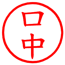 [朱肉の色]を選び、入力窓に“口中”と入力して[生成]ボタンを押すと、印影が更新され、リンクから電子印鑑(デジタル印影)がダウンロードできます。 電子印鑑「口中」の作り方文字表示が変なときや、文字バランスが悪いときは[字形切替]のチェックボックスでON/OFFを切り替え[生成]しなおしてください。 生成される画像は通常の印影「口中.png」と、にじみを表現した少し太めの印影「口中B.png」の背面透過PNG形式2種と、鮮明なPDF形式の印影「口中.pdf」の計3種類です。 朱肉の微妙な色の違いを7色で表現しました。デフォルト(左端)は、JISが定めた朱肉の色のマンセル値(7.5R 5/14)をRGB値(217,66,54)に変換したものになっています。 「電子透かし」にチェックを入れて[生成]ボタンを押すと、タイムスタンプを電子透かしとして埋め込んだセキュアな電子印鑑が作れます。詳細は別ページの「タイムスタンプと電子透かし」でご覧ください。 口中さんの日付印が作れます。「日付スタンプメーカー」は、社内向けの書類に利用されることの多い日付印(データ印)が無料で作れるWebアプリケーションです。中段に日付が入り、上段と下段は、ともに8文字まで文字が入ります。 ![]() 古代文字で落款印が作れます。「落款スタンプメーカー」で作品を引き立たせる落款印が作れます。