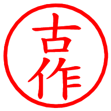 [朱肉の色]を選び、入力窓に“古作”と入力して[生成]ボタンを押すと、印影が更新され、リンクから電子印鑑(デジタル印影)がダウンロードできます。 電子印鑑「古作」の作り方文字表示が変なときや、文字バランスが悪いときは[字形切替]のチェックボックスでON/OFFを切り替え[生成]しなおしてください。 生成される画像は通常の印影「古作.png」と、にじみを表現した少し太めの印影「古作B.png」の背面透過PNG形式2種と、鮮明なPDF形式の印影「古作.pdf」の計3種類です。 朱肉の微妙な色の違いを7色で表現しました。デフォルト(左端)は、JISが定めた朱肉の色のマンセル値(7.5R 5/14)をRGB値(217,66,54)に変換したものになっています。 「電子透かし」にチェックを入れて[生成]ボタンを押すと、タイムスタンプを電子透かしとして埋め込んだセキュアな電子印鑑が作れます。詳細は別ページの「タイムスタンプと電子透かし」でご覧ください。 古作さんの日付印が作れます。「日付スタンプメーカー」は、社内向けの書類に利用されることの多い日付印(データ印)が無料で作れるWebアプリケーションです。中段に日付が入り、上段と下段は、ともに8文字まで文字が入ります。 ![]() 古代文字で落款印が作れます。「落款スタンプメーカー」で作品を引き立たせる落款印が作れます。