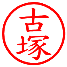[朱肉の色]を選び、入力窓に“古塚”と入力して[生成]ボタンを押すと、印影が更新され、リンクから電子印鑑(デジタル印影)がダウンロードできます。 電子印鑑「古塚」の作り方文字表示が変なときや、文字バランスが悪いときは[字形切替]のチェックボックスでON/OFFを切り替え[生成]しなおしてください。 生成される画像は通常の印影「古塚.png」と、にじみを表現した少し太めの印影「古塚B.png」の背面透過PNG形式2種と、鮮明なPDF形式の印影「古塚.pdf」の計3種類です。 朱肉の微妙な色の違いを7色で表現しました。デフォルト(左端)は、JISが定めた朱肉の色のマンセル値(7.5R 5/14)をRGB値(217,66,54)に変換したものになっています。 「電子透かし」にチェックを入れて[生成]ボタンを押すと、タイムスタンプを電子透かしとして埋め込んだセキュアな電子印鑑が作れます。詳細は別ページの「タイムスタンプと電子透かし」でご覧ください。 古塚さんの日付印が作れます。「日付スタンプメーカー」は、社内向けの書類に利用されることの多い日付印(データ印)が無料で作れるWebアプリケーションです。中段に日付が入り、上段と下段は、ともに8文字まで文字が入ります。 ![]() 古代文字で落款印が作れます。「落款スタンプメーカー」で作品を引き立たせる落款印が作れます。