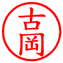 [朱肉の色]を選び、入力窓に“古岡”と入力して[生成]ボタンを押すと、印影が更新され、リンクから電子印鑑(デジタル印影)がダウンロードできます。 電子印鑑「古岡」の作り方文字表示が変なときや、文字バランスが悪いときは[字形切替]のチェックボックスでON/OFFを切り替え[生成]しなおしてください。 生成される画像は通常の印影「古岡.png」と、にじみを表現した少し太めの印影「古岡B.png」の背面透過PNG形式2種と、鮮明なPDF形式の印影「古岡.pdf」の計3種類です。 朱肉の微妙な色の違いを7色で表現しました。デフォルト(左端)は、JISが定めた朱肉の色のマンセル値(7.5R 5/14)をRGB値(217,66,54)に変換したものになっています。 「電子透かし」にチェックを入れて[生成]ボタンを押すと、タイムスタンプを電子透かしとして埋め込んだセキュアな電子印鑑が作れます。詳細は別ページの「タイムスタンプと電子透かし」でご覧ください。 古岡さんの日付印が作れます。「日付スタンプメーカー」は、社内向けの書類に利用されることの多い日付印(データ印)が無料で作れるWebアプリケーションです。中段に日付が入り、上段と下段は、ともに8文字まで文字が入ります。 ![]() 古代文字で落款印が作れます。「落款スタンプメーカー」で作品を引き立たせる落款印が作れます。