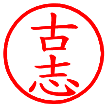 [朱肉の色]を選び、入力窓に“古志”と入力して[生成]ボタンを押すと、印影が更新され、リンクから電子印鑑(デジタル印影)がダウンロードできます。 電子印鑑「古志」の作り方文字表示が変なときや、文字バランスが悪いときは[字形切替]のチェックボックスでON/OFFを切り替え[生成]しなおしてください。 生成される画像は通常の印影「古志.png」と、にじみを表現した少し太めの印影「古志B.png」の背面透過PNG形式2種と、鮮明なPDF形式の印影「古志.pdf」の計3種類です。 朱肉の微妙な色の違いを7色で表現しました。デフォルト(左端)は、JISが定めた朱肉の色のマンセル値(7.5R 5/14)をRGB値(217,66,54)に変換したものになっています。 「電子透かし」にチェックを入れて[生成]ボタンを押すと、タイムスタンプを電子透かしとして埋め込んだセキュアな電子印鑑が作れます。詳細は別ページの「タイムスタンプと電子透かし」でご覧ください。 古志さんの日付印が作れます。「日付スタンプメーカー」は、社内向けの書類に利用されることの多い日付印(データ印)が無料で作れるWebアプリケーションです。中段に日付が入り、上段と下段は、ともに8文字まで文字が入ります。 ![]() 古代文字で落款印が作れます。「落款スタンプメーカー」で作品を引き立たせる落款印が作れます。