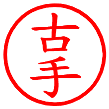 [朱肉の色]を選び、入力窓に“古手”と入力して[生成]ボタンを押すと、印影が更新され、リンクから電子印鑑(デジタル印影)がダウンロードできます。 電子印鑑「古手」の作り方文字表示が変なときや、文字バランスが悪いときは[字形切替]のチェックボックスでON/OFFを切り替え[生成]しなおしてください。 生成される画像は通常の印影「古手.png」と、にじみを表現した少し太めの印影「古手B.png」の背面透過PNG形式2種と、鮮明なPDF形式の印影「古手.pdf」の計3種類です。 朱肉の微妙な色の違いを7色で表現しました。デフォルト(左端)は、JISが定めた朱肉の色のマンセル値(7.5R 5/14)をRGB値(217,66,54)に変換したものになっています。 「電子透かし」にチェックを入れて[生成]ボタンを押すと、タイムスタンプを電子透かしとして埋め込んだセキュアな電子印鑑が作れます。詳細は別ページの「タイムスタンプと電子透かし」でご覧ください。 古手さんの日付印が作れます。「日付スタンプメーカー」は、社内向けの書類に利用されることの多い日付印(データ印)が無料で作れるWebアプリケーションです。中段に日付が入り、上段と下段は、ともに8文字まで文字が入ります。 ![]() 古代文字で落款印が作れます。「落款スタンプメーカー」で作品を引き立たせる落款印が作れます。