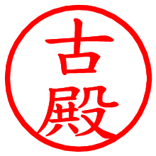 [朱肉の色]を選び、入力窓に“古殿”と入力して[生成]ボタンを押すと、印影が更新され、リンクから電子印鑑(デジタル印影)がダウンロードできます。 電子印鑑「古殿」の作り方文字表示が変なときや、文字バランスが悪いときは[字形切替]のチェックボックスでON/OFFを切り替え[生成]しなおしてください。 生成される画像は通常の印影「古殿.png」と、にじみを表現した少し太めの印影「古殿B.png」の背面透過PNG形式2種と、鮮明なPDF形式の印影「古殿.pdf」の計3種類です。 朱肉の微妙な色の違いを7色で表現しました。デフォルト(左端)は、JISが定めた朱肉の色のマンセル値(7.5R 5/14)をRGB値(217,66,54)に変換したものになっています。 「電子透かし」にチェックを入れて[生成]ボタンを押すと、タイムスタンプを電子透かしとして埋め込んだセキュアな電子印鑑が作れます。詳細は別ページの「タイムスタンプと電子透かし」でご覧ください。 古殿さんの日付印が作れます。「日付スタンプメーカー」は、社内向けの書類に利用されることの多い日付印(データ印)が無料で作れるWebアプリケーションです。中段に日付が入り、上段と下段は、ともに8文字まで文字が入ります。 ![]() 古代文字で落款印が作れます。「落款スタンプメーカー」で作品を引き立たせる落款印が作れます。
