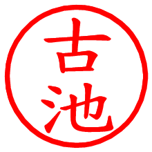 [朱肉の色]を選び、入力窓に“古池”と入力して[生成]ボタンを押すと、印影が更新され、リンクから電子印鑑(デジタル印影)がダウンロードできます。 電子印鑑「古池」の作り方文字表示が変なときや、文字バランスが悪いときは[字形切替]のチェックボックスでON/OFFを切り替え[生成]しなおしてください。 生成される画像は通常の印影「古池.png」と、にじみを表現した少し太めの印影「古池B.png」の背面透過PNG形式2種と、鮮明なPDF形式の印影「古池.pdf」の計3種類です。 朱肉の微妙な色の違いを7色で表現しました。デフォルト(左端)は、JISが定めた朱肉の色のマンセル値(7.5R 5/14)をRGB値(217,66,54)に変換したものになっています。 「電子透かし」にチェックを入れて[生成]ボタンを押すと、タイムスタンプを透かしとして埋め込んだセキュアな電子印鑑が作れます。詳細は別ページの「電子透かしとタイムスタンプ」でご覧ください。  古池さんの日付印が作れます。「日付スタンプメーカー」は、社内向けの書類に利用されることの多い日付印(データ印)が無料で作れるWebアプリケーションです。 中段に日付が入り、上段と下段は、ともに8文字まで文字が入ります。   古代文字で落款印が作れます。「落款スタンプメーカー」で作品を引き立たせる落款印が作れます。  なりきり書道 「落款スタンプメーカー」で作成した落款印の全体的な配置バランスの確認にご利用いただけます。デザインのワンポイントやラインスタンプ等にもお使いください。  遊び心ある古池さんの角印はいかが? 絵文字が使えてLINEスタンプや年賀状にも使える消しゴムはんこ風の電子印鑑が作れます。  画像スタンプメーカーは、猫派の方はもちろん。犬派の方にもおすすめしたいペットなどのお気に入りの画像とかわいいタッチの文字が入るほっこりしたスタンプです。 マイスタンプメーカーとは法的な電子印鑑にはあたりませんので三文判的な位置付けでご利用ください。 | ||