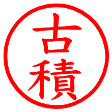 [朱肉の色]を選び、入力窓に“古積”と入力して[生成]ボタンを押すと、印影が更新され、リンクから電子印鑑(デジタル印影)がダウンロードできます。 電子印鑑「古積」の作り方文字表示が変なときや、文字バランスが悪いときは[字形切替]のチェックボックスでON/OFFを切り替え[生成]しなおしてください。 生成される画像は通常の印影「古積.png」と、にじみを表現した少し太めの印影「古積B.png」の背面透過PNG形式2種と、鮮明なPDF形式の印影「古積.pdf」の計3種類です。 朱肉の微妙な色の違いを7色で表現しました。デフォルト(左端)は、JISが定めた朱肉の色のマンセル値(7.5R 5/14)をRGB値(217,66,54)に変換したものになっています。 「電子透かし」にチェックを入れて[生成]ボタンを押すと、タイムスタンプを電子透かしとして埋め込んだセキュアな電子印鑑が作れます。詳細は別ページの「タイムスタンプと電子透かし」でご覧ください。 古積さんの日付印が作れます。「日付スタンプメーカー」は、社内向けの書類に利用されることの多い日付印(データ印)が無料で作れるWebアプリケーションです。中段に日付が入り、上段と下段は、ともに8文字まで文字が入ります。 ![]() 古代文字で落款印が作れます。「落款スタンプメーカー」で作品を引き立たせる落款印が作れます。