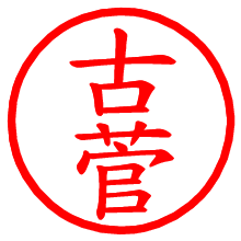 [朱肉の色]を選び、入力窓に“古菅”と入力して[生成]ボタンを押すと、印影が更新され、リンクから電子印鑑(デジタル印影)がダウンロードできます。 電子印鑑「古菅」の作り方文字表示が変なときや、文字バランスが悪いときは[字形切替]のチェックボックスでON/OFFを切り替え[生成]しなおしてください。 生成される画像は通常の印影「古菅.png」と、にじみを表現した少し太めの印影「古菅B.png」の背面透過PNG形式2種と、鮮明なPDF形式の印影「古菅.pdf」の計3種類です。 朱肉の微妙な色の違いを7色で表現しました。デフォルト(左端)は、JISが定めた朱肉の色のマンセル値(7.5R 5/14)をRGB値(217,66,54)に変換したものになっています。 「電子透かし」にチェックを入れて[生成]ボタンを押すと、タイムスタンプを電子透かしとして埋め込んだセキュアな電子印鑑が作れます。詳細は別ページの「タイムスタンプと電子透かし」でご覧ください。 古菅さんの日付印が作れます。「日付スタンプメーカー」は、社内向けの書類に利用されることの多い日付印(データ印)が無料で作れるWebアプリケーションです。中段に日付が入り、上段と下段は、ともに8文字まで文字が入ります。 ![]() 古代文字で落款印が作れます。「落款スタンプメーカー」で作品を引き立たせる落款印が作れます。