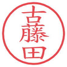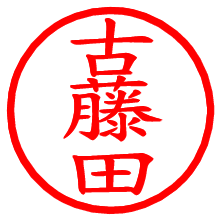 [朱肉の色]を選び、入力窓に“古藤田”と入力して[生成]ボタンを押すと、印影が更新され、リンクから電子印鑑(デジタル印影)がダウンロードできます。 電子印鑑「古藤田」の作り方文字表示が変なときや、文字バランスが悪いときは[字形切替]のチェックボックスでON/OFFを切り替え[生成]しなおしてください。 生成される画像は通常の印影「古藤田.png」と、にじみを表現した少し太めの印影「古藤田B.png」の背面透過PNG形式2種と、鮮明なPDF形式の印影「古藤田.pdf」の計3種類です。 朱肉の微妙な色の違いを7色で表現しました。デフォルト(左端)は、JISが定めた朱肉の色のマンセル値(7.5R 5/14)をRGB値(217,66,54)に変換したものになっています。 「電子透かし」にチェックを入れて[生成]ボタンを押すと、タイムスタンプを電子透かしとして埋め込んだセキュアな電子印鑑が作れます。詳細は別ページの「タイムスタンプと電子透かし」でご覧ください。 古藤田さんの日付印が作れます。「日付スタンプメーカー」は、社内向けの書類に利用されることの多い日付印(データ印)が無料で作れるWebアプリケーションです。中段に日付が入り、上段と下段は、ともに8文字まで文字が入ります。 ![]() 古代文字で落款印が作れます。「落款スタンプメーカー」で作品を引き立たせる落款印が作れます。