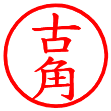 [朱肉の色]を選び、入力窓に“古角”と入力して[生成]ボタンを押すと、印影が更新され、リンクから電子印鑑(デジタル印影)がダウンロードできます。 電子印鑑「古角」の作り方文字表示が変なときや、文字バランスが悪いときは[字形切替]のチェックボックスでON/OFFを切り替え[生成]しなおしてください。 生成される画像は通常の印影「古角.png」と、にじみを表現した少し太めの印影「古角B.png」の背面透過PNG形式2種と、鮮明なPDF形式の印影「古角.pdf」の計3種類です。 朱肉の微妙な色の違いを7色で表現しました。デフォルト(左端)は、JISが定めた朱肉の色のマンセル値(7.5R 5/14)をRGB値(217,66,54)に変換したものになっています。 「電子透かし」にチェックを入れて[生成]ボタンを押すと、タイムスタンプを電子透かしとして埋め込んだセキュアな電子印鑑が作れます。詳細は別ページの「タイムスタンプと電子透かし」でご覧ください。 古角さんの日付印が作れます。「日付スタンプメーカー」は、社内向けの書類に利用されることの多い日付印(データ印)が無料で作れるWebアプリケーションです。中段に日付が入り、上段と下段は、ともに8文字まで文字が入ります。 ![]() 古代文字で落款印が作れます。「落款スタンプメーカー」で作品を引き立たせる落款印が作れます。