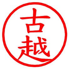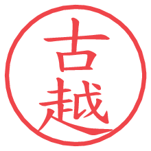 [朱肉の色]を選び、入力窓に“古越”と入力して[生成]ボタンを押すと、印影が更新され、リンクから電子印鑑(デジタル印影)がダウンロードできます。 電子印鑑「古越」の作り方文字表示が変なときや、文字バランスが悪いときは[字形切替]のチェックボックスでON/OFFを切り替え[生成]しなおしてください。 生成される画像は通常の印影「古越.png」と、にじみを表現した少し太めの印影「古越B.png」の背面透過PNG形式2種と、鮮明なPDF形式の印影「古越.pdf」の計3種類です。 朱肉の微妙な色の違いを7色で表現しました。デフォルト(左端)は、JISが定めた朱肉の色のマンセル値(7.5R 5/14)をRGB値(217,66,54)に変換したものになっています。 「電子透かし」にチェックを入れて[生成]ボタンを押すと、タイムスタンプを電子透かしとして埋め込んだセキュアな電子印鑑が作れます。詳細は別ページの「タイムスタンプと電子透かし」でご覧ください。 古越さんの日付印が作れます。「日付スタンプメーカー」は、社内向けの書類に利用されることの多い日付印(データ印)が無料で作れるWebアプリケーションです。中段に日付が入り、上段と下段は、ともに8文字まで文字が入ります。 ![]() 古代文字で落款印が作れます。「落款スタンプメーカー」で作品を引き立たせる落款印が作れます。