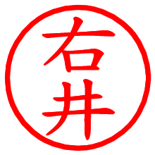 [朱肉の色]を選び、入力窓に“右井”と入力して[生成]ボタンを押すと、印影が更新され、リンクから電子印鑑(デジタル印影)がダウンロードできます。 電子印鑑「右井」の作り方文字表示が変なときや、文字バランスが悪いときは[字形切替]のチェックボックスでON/OFFを切り替え[生成]しなおしてください。 生成される画像は通常の印影「右井.png」と、にじみを表現した少し太めの印影「右井B.png」の背面透過PNG形式2種と、鮮明なPDF形式の印影「右井.pdf」の計3種類です。 朱肉の微妙な色の違いを7色で表現しました。デフォルト(左端)は、JISが定めた朱肉の色のマンセル値(7.5R 5/14)をRGB値(217,66,54)に変換したものになっています。 「電子透かし」にチェックを入れて[生成]ボタンを押すと、タイムスタンプを電子透かしとして埋め込んだセキュアな電子印鑑が作れます。詳細は別ページの「タイムスタンプと電子透かし」でご覧ください。 右井さんの日付印が作れます。「日付スタンプメーカー」は、社内向けの書類に利用されることの多い日付印(データ印)が無料で作れるWebアプリケーションです。中段に日付が入り、上段と下段は、ともに8文字まで文字が入ります。 ![]() 古代文字で落款印が作れます。「落款スタンプメーカー」で作品を引き立たせる落款印が作れます。