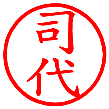 [朱肉の色]を選び、入力窓に“司代”と入力して[生成]ボタンを押すと、印影が更新され、リンクから電子印鑑(デジタル印影)がダウンロードできます。 電子印鑑「司代」の作り方文字表示が変なときや、文字バランスが悪いときは[字形切替]のチェックボックスでON/OFFを切り替え[生成]しなおしてください。 生成される画像は通常の印影「司代.png」と、にじみを表現した少し太めの印影「司代B.png」の背面透過PNG形式2種と、鮮明なPDF形式の印影「司代.pdf」の計3種類です。 朱肉の微妙な色の違いを7色で表現しました。デフォルト(左端)は、JISが定めた朱肉の色のマンセル値(7.5R 5/14)をRGB値(217,66,54)に変換したものになっています。 「電子透かし」にチェックを入れて[生成]ボタンを押すと、タイムスタンプを透かしとして埋め込んだセキュアな電子印鑑が作れます。詳細は別ページの「電子透かしとタイムスタンプ」でご覧ください。 司代さんの日付印が作れます。「日付スタンプメーカー」は、社内向けの書類に利用されることの多い日付印(データ印)が無料で作れるWebアプリケーションです。中段に日付が入り、上段と下段は、ともに8文字まで文字が入ります。 ![]() 古代文字で落款印が作れます。「落款スタンプメーカー」で作品を引き立たせる落款印が作れます。