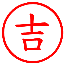 [朱肉の色]を選び、入力窓に“吉”と入力して[生成]ボタンを押すと、印影が更新され、リンクから電子印鑑(デジタル印影)がダウンロードできます。 電子印鑑「吉」の作り方文字表示が変なときや、文字バランスが悪いときは[字形切替]のチェックボックスでON/OFFを切り替え[生成]しなおしてください。 生成される画像は通常の印影「吉.png」と、にじみを表現した少し太めの印影「吉B.png」の背面透過PNG形式2種と、鮮明なPDF形式の印影「吉.pdf」の計3種類です。 朱肉の微妙な色の違いを7色で表現しました。デフォルト(左端)は、JISが定めた朱肉の色のマンセル値(7.5R 5/14)をRGB値(217,66,54)に変換したものになっています。 「電子透かし」にチェックを入れて[生成]ボタンを押すと、タイムスタンプを電子透かしとして埋め込んだセキュアな電子印鑑が作れます。詳細は別ページの「タイムスタンプと電子透かし」でご覧ください。 吉さんの日付印が作れます。「日付スタンプメーカー」は、社内向けの書類に利用されることの多い日付印(データ印)が無料で作れるWebアプリケーションです。中段に日付が入り、上段と下段は、ともに8文字まで文字が入ります。 ![]() 古代文字で落款印が作れます。「落款スタンプメーカー」で作品を引き立たせる落款印が作れます。