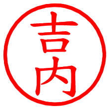 [朱肉の色]を選び、入力窓に“吉内”と入力して[生成]ボタンを押すと、印影が更新され、リンクから電子印鑑(デジタル印影)がダウンロードできます。 電子印鑑「吉内」の作り方文字表示が変なときや、文字バランスが悪いときは[字形切替]のチェックボックスでON/OFFを切り替え[生成]しなおしてください。 生成される画像は通常の印影「吉内.png」と、にじみを表現した少し太めの印影「吉内B.png」の背面透過PNG形式2種と、鮮明なPDF形式の印影「吉内.pdf」の計3種類です。 朱肉の微妙な色の違いを7色で表現しました。デフォルト(左端)は、JISが定めた朱肉の色のマンセル値(7.5R 5/14)をRGB値(217,66,54)に変換したものになっています。 「電子透かし」にチェックを入れて[生成]ボタンを押すと、タイムスタンプを電子透かしとして埋め込んだセキュアな電子印鑑が作れます。詳細は別ページの「タイムスタンプと電子透かし」でご覧ください。 吉内さんの日付印が作れます。「日付スタンプメーカー」は、社内向けの書類に利用されることの多い日付印(データ印)が無料で作れるWebアプリケーションです。中段に日付が入り、上段と下段は、ともに8文字まで文字が入ります。 ![]() 古代文字で落款印が作れます。「落款スタンプメーカー」で作品を引き立たせる落款印が作れます。