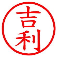 [朱肉の色]を選び、入力窓に“吉利”と入力して[生成]ボタンを押すと、印影が更新され、リンクから電子印鑑(デジタル印影)がダウンロードできます。 電子印鑑「吉利」の作り方文字表示が変なときや、文字バランスが悪いときは[字形切替]のチェックボックスでON/OFFを切り替え[生成]しなおしてください。 生成される画像は通常の印影「吉利.png」と、にじみを表現した少し太めの印影「吉利B.png」の背面透過PNG形式2種と、鮮明なPDF形式の印影「吉利.pdf」の計3種類です。 朱肉の微妙な色の違いを7色で表現しました。デフォルト(左端)は、JISが定めた朱肉の色のマンセル値(7.5R 5/14)をRGB値(217,66,54)に変換したものになっています。 「電子透かし」にチェックを入れて[生成]ボタンを押すと、タイムスタンプを電子透かしとして埋め込んだセキュアな電子印鑑が作れます。詳細は別ページの「タイムスタンプと電子透かし」でご覧ください。 吉利さんの日付印が作れます。「日付スタンプメーカー」は、社内向けの書類に利用されることの多い日付印(データ印)が無料で作れるWebアプリケーションです。中段に日付が入り、上段と下段は、ともに8文字まで文字が入ります。 ![]() 古代文字で落款印が作れます。「落款スタンプメーカー」で作品を引き立たせる落款印が作れます。