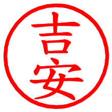 [朱肉の色]を選び、入力窓に“吉安”と入力して[生成]ボタンを押すと、印影が更新され、リンクから電子印鑑(デジタル印影)がダウンロードできます。 電子印鑑「吉安」の作り方文字表示が変なときや、文字バランスが悪いときは[字形切替]のチェックボックスでON/OFFを切り替え[生成]しなおしてください。 生成される画像は通常の印影「吉安.png」と、にじみを表現した少し太めの印影「吉安B.png」の背面透過PNG形式2種と、鮮明なPDF形式の印影「吉安.pdf」の計3種類です。 朱肉の微妙な色の違いを7色で表現しました。デフォルト(左端)は、JISが定めた朱肉の色のマンセル値(7.5R 5/14)をRGB値(217,66,54)に変換したものになっています。 「電子透かし」にチェックを入れて[生成]ボタンを押すと、タイムスタンプを電子透かしとして埋め込んだセキュアな電子印鑑が作れます。詳細は別ページの「タイムスタンプと電子透かし」でご覧ください。 吉安さんの日付印が作れます。「日付スタンプメーカー」は、社内向けの書類に利用されることの多い日付印(データ印)が無料で作れるWebアプリケーションです。中段に日付が入り、上段と下段は、ともに8文字まで文字が入ります。 ![]() 古代文字で落款印が作れます。「落款スタンプメーカー」で作品を引き立たせる落款印が作れます。