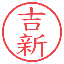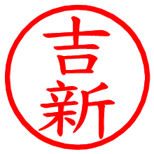 [朱肉の色]を選び、入力窓に“吉新”と入力して[生成]ボタンを押すと、印影が更新され、リンクから電子印鑑(デジタル印影)がダウンロードできます。 電子印鑑「吉新」の作り方文字表示が変なときや、文字バランスが悪いときは[字形切替]のチェックボックスでON/OFFを切り替え[生成]しなおしてください。 生成される画像は通常の印影「吉新.png」と、にじみを表現した少し太めの印影「吉新B.png」の背面透過PNG形式2種と、鮮明なPDF形式の印影「吉新.pdf」の計3種類です。 朱肉の微妙な色の違いを7色で表現しました。デフォルト(左端)は、JISが定めた朱肉の色のマンセル値(7.5R 5/14)をRGB値(217,66,54)に変換したものになっています。 「電子透かし」にチェックを入れて[生成]ボタンを押すと、タイムスタンプを電子透かしとして埋め込んだセキュアな電子印鑑が作れます。詳細は別ページの「タイムスタンプと電子透かし」でご覧ください。 吉新さんの日付印が作れます。「日付スタンプメーカー」は、社内向けの書類に利用されることの多い日付印(データ印)が無料で作れるWebアプリケーションです。中段に日付が入り、上段と下段は、ともに8文字まで文字が入ります。 ![]() 古代文字で落款印が作れます。「落款スタンプメーカー」で作品を引き立たせる落款印が作れます。
