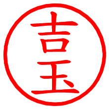 [朱肉の色]を選び、入力窓に“吉玉”と入力して[生成]ボタンを押すと、印影が更新され、リンクから電子印鑑(デジタル印影)がダウンロードできます。 電子印鑑「吉玉」の作り方文字表示が変なときや、文字バランスが悪いときは[字形切替]のチェックボックスでON/OFFを切り替え[生成]しなおしてください。 生成される画像は通常の印影「吉玉.png」と、にじみを表現した少し太めの印影「吉玉B.png」の背面透過PNG形式2種と、鮮明なPDF形式の印影「吉玉.pdf」の計3種類です。 朱肉の微妙な色の違いを7色で表現しました。デフォルト(左端)は、JISが定めた朱肉の色のマンセル値(7.5R 5/14)をRGB値(217,66,54)に変換したものになっています。 「電子透かし」にチェックを入れて[生成]ボタンを押すと、タイムスタンプを電子透かしとして埋め込んだセキュアな電子印鑑が作れます。詳細は別ページの「タイムスタンプと電子透かし」でご覧ください。 吉玉さんの日付印が作れます。「日付スタンプメーカー」は、社内向けの書類に利用されることの多い日付印(データ印)が無料で作れるWebアプリケーションです。中段に日付が入り、上段と下段は、ともに8文字まで文字が入ります。 ![]() 古代文字で落款印が作れます。「落款スタンプメーカー」で作品を引き立たせる落款印が作れます。