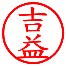 [朱肉の色]を選び、入力窓に“吉益”と入力して[生成]ボタンを押すと、印影が更新され、リンクから電子印鑑(デジタル印影)がダウンロードできます。 電子印鑑「吉益」の作り方文字表示が変なときや、文字バランスが悪いときは[字形切替]のチェックボックスでON/OFFを切り替え[生成]しなおしてください。 生成される画像は通常の印影「吉益.png」と、にじみを表現した少し太めの印影「吉益B.png」の背面透過PNG形式2種と、鮮明なPDF形式の印影「吉益.pdf」の計3種類です。 朱肉の微妙な色の違いを7色で表現しました。デフォルト(左端)は、JISが定めた朱肉の色のマンセル値(7.5R 5/14)をRGB値(217,66,54)に変換したものになっています。 「電子透かし」にチェックを入れて[生成]ボタンを押すと、タイムスタンプを電子透かしとして埋め込んだセキュアな電子印鑑が作れます。詳細は別ページの「タイムスタンプと電子透かし」でご覧ください。 吉益さんの日付印が作れます。「日付スタンプメーカー」は、社内向けの書類に利用されることの多い日付印(データ印)が無料で作れるWebアプリケーションです。中段に日付が入り、上段と下段は、ともに8文字まで文字が入ります。 ![]() 古代文字で落款印が作れます。「落款スタンプメーカー」で作品を引き立たせる落款印が作れます。