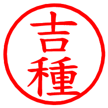 [朱肉の色]を選び、入力窓に“吉種”と入力して[生成]ボタンを押すと、印影が更新され、リンクから電子印鑑(デジタル印影)がダウンロードできます。 電子印鑑「吉種」の作り方文字表示が変なときや、文字バランスが悪いときは[字形切替]のチェックボックスでON/OFFを切り替え[生成]しなおしてください。 生成される画像は通常の印影「吉種.png」と、にじみを表現した少し太めの印影「吉種B.png」の背面透過PNG形式2種と、鮮明なPDF形式の印影「吉種.pdf」の計3種類です。 朱肉の微妙な色の違いを7色で表現しました。デフォルト(左端)は、JISが定めた朱肉の色のマンセル値(7.5R 5/14)をRGB値(217,66,54)に変換したものになっています。 「電子透かし」にチェックを入れて[生成]ボタンを押すと、タイムスタンプを電子透かしとして埋め込んだセキュアな電子印鑑が作れます。詳細は別ページの「タイムスタンプと電子透かし」でご覧ください。 吉種さんの日付印が作れます。「日付スタンプメーカー」は、社内向けの書類に利用されることの多い日付印(データ印)が無料で作れるWebアプリケーションです。中段に日付が入り、上段と下段は、ともに8文字まで文字が入ります。 ![]() 古代文字で落款印が作れます。「落款スタンプメーカー」で作品を引き立たせる落款印が作れます。