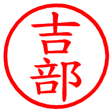 [朱肉の色]を選び、入力窓に“吉部”と入力して[生成]ボタンを押すと、印影が更新され、リンクから電子印鑑(デジタル印影)がダウンロードできます。 電子印鑑「吉部」の作り方文字表示が変なときや、文字バランスが悪いときは[字形切替]のチェックボックスでON/OFFを切り替え[生成]しなおしてください。 生成される画像は通常の印影「吉部.png」と、にじみを表現した少し太めの印影「吉部B.png」の背面透過PNG形式2種と、鮮明なPDF形式の印影「吉部.pdf」の計3種類です。 朱肉の微妙な色の違いを7色で表現しました。デフォルト(左端)は、JISが定めた朱肉の色のマンセル値(7.5R 5/14)をRGB値(217,66,54)に変換したものになっています。 「電子透かし」にチェックを入れて[生成]ボタンを押すと、タイムスタンプを電子透かしとして埋め込んだセキュアな電子印鑑が作れます。詳細は別ページの「タイムスタンプと電子透かし」でご覧ください。 吉部さんの日付印が作れます。「日付スタンプメーカー」は、社内向けの書類に利用されることの多い日付印(データ印)が無料で作れるWebアプリケーションです。中段に日付が入り、上段と下段は、ともに8文字まで文字が入ります。 ![]() 古代文字で落款印が作れます。「落款スタンプメーカー」で作品を引き立たせる落款印が作れます。