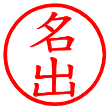 [朱肉の色]を選び、入力窓に“名出”と入力して[生成]ボタンを押すと、印影が更新され、リンクから電子印鑑(デジタル印影)がダウンロードできます。 電子印鑑「名出」の作り方文字表示が変なときや、文字バランスが悪いときは[字形切替]のチェックボックスでON/OFFを切り替え[生成]しなおしてください。 生成される画像は通常の印影「名出.png」と、にじみを表現した少し太めの印影「名出B.png」の背面透過PNG形式2種と、鮮明なPDF形式の印影「名出.pdf」の計3種類です。 朱肉の微妙な色の違いを7色で表現しました。デフォルト(左端)は、JISが定めた朱肉の色のマンセル値(7.5R 5/14)をRGB値(217,66,54)に変換したものになっています。 「電子透かし」にチェックを入れて[生成]ボタンを押すと、タイムスタンプを電子透かしとして埋め込んだセキュアな電子印鑑が作れます。詳細は別ページの「タイムスタンプと電子透かし」でご覧ください。 名出さんの日付印が作れます。「日付スタンプメーカー」は、社内向けの書類に利用されることの多い日付印(データ印)が無料で作れるWebアプリケーションです。中段に日付が入り、上段と下段は、ともに8文字まで文字が入ります。 ![]() 古代文字で落款印が作れます。「落款スタンプメーカー」で作品を引き立たせる落款印が作れます。