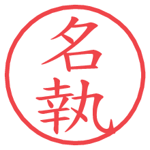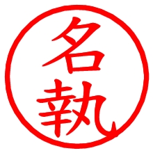 [朱肉の色]を選び、入力窓に“名執”と入力して[生成]ボタンを押すと、印影が更新され、リンクから電子印鑑(デジタル印影)がダウンロードできます。 電子印鑑「名執」の作り方文字表示が変なときや、文字バランスが悪いときは[字形切替]のチェックボックスでON/OFFを切り替え[生成]しなおしてください。 生成される画像は通常の印影「名執.png」と、にじみを表現した少し太めの印影「名執B.png」の背面透過PNG形式2種と、鮮明なPDF形式の印影「名執.pdf」の計3種類です。 朱肉の微妙な色の違いを7色で表現しました。デフォルト(左端)は、JISが定めた朱肉の色のマンセル値(7.5R 5/14)をRGB値(217,66,54)に変換したものになっています。 「電子透かし」にチェックを入れて[生成]ボタンを押すと、タイムスタンプを電子透かしとして埋め込んだセキュアな電子印鑑が作れます。詳細は別ページの「タイムスタンプと電子透かし」でご覧ください。 名執さんの日付印が作れます。「日付スタンプメーカー」は、社内向けの書類に利用されることの多い日付印(データ印)が無料で作れるWebアプリケーションです。中段に日付が入り、上段と下段は、ともに8文字まで文字が入ります。 ![]() 古代文字で落款印が作れます。「落款スタンプメーカー」で作品を引き立たせる落款印が作れます。