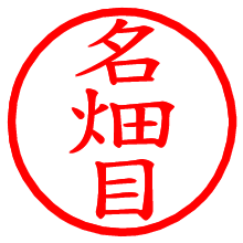 [朱肉の色]を選び、入力窓に“名畑目”と入力して[生成]ボタンを押すと、印影が更新され、リンクから電子印鑑(デジタル印影)がダウンロードできます。 電子印鑑「名畑目」の作り方文字表示が変なときや、文字バランスが悪いときは[字形切替]のチェックボックスでON/OFFを切り替え[生成]しなおしてください。 生成される画像は通常の印影「名畑目.png」と、にじみを表現した少し太めの印影「名畑目B.png」の背面透過PNG形式2種と、鮮明なPDF形式の印影「名畑目.pdf」の計3種類です。 朱肉の微妙な色の違いを7色で表現しました。デフォルト(左端)は、JISが定めた朱肉の色のマンセル値(7.5R 5/14)をRGB値(217,66,54)に変換したものになっています。 「電子透かし」にチェックを入れて[生成]ボタンを押すと、タイムスタンプを電子透かしとして埋め込んだセキュアな電子印鑑が作れます。詳細は別ページの「タイムスタンプと電子透かし」でご覧ください。 名畑目さんの日付印が作れます。「日付スタンプメーカー」は、社内向けの書類に利用されることの多い日付印(データ印)が無料で作れるWebアプリケーションです。中段に日付が入り、上段と下段は、ともに8文字まで文字が入ります。 ![]() 古代文字で落款印が作れます。「落款スタンプメーカー」で作品を引き立たせる落款印が作れます。