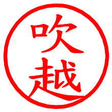 [朱肉の色]を選び、入力窓に“吹越”と入力して[生成]ボタンを押すと、印影が更新され、リンクから電子印鑑(デジタル印影)がダウンロードできます。 電子印鑑「吹越」の作り方文字表示が変なときや、文字バランスが悪いときは[字形切替]のチェックボックスでON/OFFを切り替え[生成]しなおしてください。 生成される画像は通常の印影「吹越.png」と、にじみを表現した少し太めの印影「吹越B.png」の背面透過PNG形式2種と、鮮明なPDF形式の印影「吹越.pdf」の計3種類です。 朱肉の微妙な色の違いを7色で表現しました。デフォルト(左端)は、JISが定めた朱肉の色のマンセル値(7.5R 5/14)をRGB値(217,66,54)に変換したものになっています。 「電子透かし」にチェックを入れて[生成]ボタンを押すと、タイムスタンプを電子透かしとして埋め込んだセキュアな電子印鑑が作れます。詳細は別ページの「タイムスタンプと電子透かし」でご覧ください。 吹越さんの日付印が作れます。「日付スタンプメーカー」は、社内向けの書類に利用されることの多い日付印(データ印)が無料で作れるWebアプリケーションです。中段に日付が入り、上段と下段は、ともに8文字まで文字が入ります。 ![]() 古代文字で落款印が作れます。「落款スタンプメーカー」で作品を引き立たせる落款印が作れます。