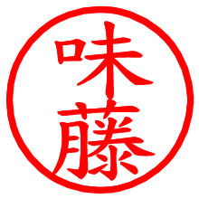 [朱肉の色]を選び、入力窓に“味藤”と入力して[生成]ボタンを押すと、印影が更新され、リンクから電子印鑑(デジタル印影)がダウンロードできます。 電子印鑑「味藤」の作り方文字表示が変なときや、文字バランスが悪いときは[字形切替]のチェックボックスでON/OFFを切り替え[生成]しなおしてください。 生成される画像は通常の印影「味藤.png」と、にじみを表現した少し太めの印影「味藤B.png」の背面透過PNG形式2種と、鮮明なPDF形式の印影「味藤.pdf」の計3種類です。 朱肉の微妙な色の違いを7色で表現しました。デフォルト(左端)は、JISが定めた朱肉の色のマンセル値(7.5R 5/14)をRGB値(217,66,54)に変換したものになっています。 「電子透かし」にチェックを入れて[生成]ボタンを押すと、タイムスタンプを電子透かしとして埋め込んだセキュアな電子印鑑が作れます。詳細は別ページの「タイムスタンプと電子透かし」でご覧ください。 味藤さんの日付印が作れます。「日付スタンプメーカー」は、社内向けの書類に利用されることの多い日付印(データ印)が無料で作れるWebアプリケーションです。中段に日付が入り、上段と下段は、ともに8文字まで文字が入ります。 ![]() 古代文字で落款印が作れます。「落款スタンプメーカー」で作品を引き立たせる落款印が作れます。