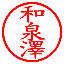 [朱肉の色]を選び、入力窓に“和泉澤”と入力して[生成]ボタンを押すと、印影が更新され、リンクから電子印鑑(デジタル印影)がダウンロードできます。 電子印鑑「和泉澤」の作り方文字表示が変なときや、文字バランスが悪いときは[字形切替]のチェックボックスでON/OFFを切り替え[生成]しなおしてください。 生成される画像は通常の印影「和泉澤.png」と、にじみを表現した少し太めの印影「和泉澤B.png」の背面透過PNG形式2種と、鮮明なPDF形式の印影「和泉澤.pdf」の計3種類です。 朱肉の微妙な色の違いを7色で表現しました。デフォルト(左端)は、JISが定めた朱肉の色のマンセル値(7.5R 5/14)をRGB値(217,66,54)に変換したものになっています。 「電子透かし」にチェックを入れて[生成]ボタンを押すと、タイムスタンプを電子透かしとして埋め込んだセキュアな電子印鑑が作れます。詳細は別ページの「タイムスタンプと電子透かし」でご覧ください。 和泉澤さんの日付印が作れます。「日付スタンプメーカー」は、社内向けの書類に利用されることの多い日付印(データ印)が無料で作れるWebアプリケーションです。中段に日付が入り、上段と下段は、ともに8文字まで文字が入ります。 ![]() 古代文字で落款印が作れます。「落款スタンプメーカー」で作品を引き立たせる落款印が作れます。