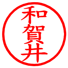 [朱肉の色]を選び、入力窓に“和賀井”と入力して[生成]ボタンを押すと、印影が更新され、リンクから電子印鑑(デジタル印影)がダウンロードできます。 電子印鑑「和賀井」の作り方文字表示が変なときや、文字バランスが悪いときは[字形切替]のチェックボックスでON/OFFを切り替え[生成]しなおしてください。 生成される画像は通常の印影「和賀井.png」と、にじみを表現した少し太めの印影「和賀井B.png」の背面透過PNG形式2種と、鮮明なPDF形式の印影「和賀井.pdf」の計3種類です。 朱肉の微妙な色の違いを7色で表現しました。デフォルト(左端)は、JISが定めた朱肉の色のマンセル値(7.5R 5/14)をRGB値(217,66,54)に変換したものになっています。 「電子透かし」にチェックを入れて[生成]ボタンを押すと、タイムスタンプを電子透かしとして埋め込んだセキュアな電子印鑑が作れます。詳細は別ページの「タイムスタンプと電子透かし」でご覧ください。 和賀井さんの日付印が作れます。「日付スタンプメーカー」は、社内向けの書類に利用されることの多い日付印(データ印)が無料で作れるWebアプリケーションです。中段に日付が入り、上段と下段は、ともに8文字まで文字が入ります。 ![]() 古代文字で落款印が作れます。「落款スタンプメーカー」で作品を引き立たせる落款印が作れます。
