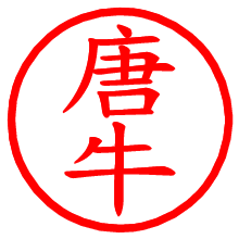 [朱肉の色]を選び、入力窓に“唐牛”と入力して[生成]ボタンを押すと、印影が更新され、リンクから電子印鑑(デジタル印影)がダウンロードできます。 電子印鑑「唐牛」の作り方文字表示が変なときや、文字バランスが悪いときは[字形切替]のチェックボックスでON/OFFを切り替え[生成]しなおしてください。 生成される画像は通常の印影「唐牛.png」と、にじみを表現した少し太めの印影「唐牛B.png」の背面透過PNG形式2種と、鮮明なPDF形式の印影「唐牛.pdf」の計3種類です。 朱肉の微妙な色の違いを7色で表現しました。デフォルト(左端)は、JISが定めた朱肉の色のマンセル値(7.5R 5/14)をRGB値(217,66,54)に変換したものになっています。 「電子透かし」にチェックを入れて[生成]ボタンを押すと、タイムスタンプを電子透かしとして埋め込んだセキュアな電子印鑑が作れます。詳細は別ページの「タイムスタンプと電子透かし」でご覧ください。 唐牛さんの日付印が作れます。「日付スタンプメーカー」は、社内向けの書類に利用されることの多い日付印(データ印)が無料で作れるWebアプリケーションです。中段に日付が入り、上段と下段は、ともに8文字まで文字が入ります。 ![]() 古代文字で落款印が作れます。「落款スタンプメーカー」で作品を引き立たせる落款印が作れます。
