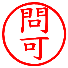 [朱肉の色]を選び、入力窓に“問可”と入力して[生成]ボタンを押すと、印影が更新され、リンクから電子印鑑(デジタル印影)がダウンロードできます。 電子印鑑「問可」の作り方文字表示が変なときや、文字バランスが悪いときは[字形切替]のチェックボックスでON/OFFを切り替え[生成]しなおしてください。 生成される画像は通常の印影「問可.png」と、にじみを表現した少し太めの印影「問可B.png」の背面透過PNG形式2種と、鮮明なPDF形式の印影「問可.pdf」の計3種類です。 朱肉の微妙な色の違いを7色で表現しました。デフォルト(左端)は、JISが定めた朱肉の色のマンセル値(7.5R 5/14)をRGB値(217,66,54)に変換したものになっています。 「電子透かし」にチェックを入れて[生成]ボタンを押すと、タイムスタンプを電子透かしとして埋め込んだセキュアな電子印鑑が作れます。詳細は別ページの「タイムスタンプと電子透かし」でご覧ください。 問可さんの日付印が作れます。「日付スタンプメーカー」は、社内向けの書類に利用されることの多い日付印(データ印)が無料で作れるWebアプリケーションです。中段に日付が入り、上段と下段は、ともに8文字まで文字が入ります。 ![]() 古代文字で落款印が作れます。「落款スタンプメーカー」で作品を引き立たせる落款印が作れます。