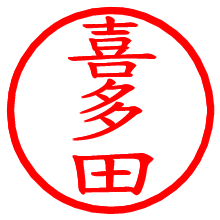 [朱肉の色]を選び、入力窓に“喜多田”と入力して[生成]ボタンを押すと、印影が更新され、リンクから電子印鑑(デジタル印影)がダウンロードできます。 電子印鑑「喜多田」の作り方文字表示が変なときや、文字バランスが悪いときは[字形切替]のチェックボックスでON/OFFを切り替え[生成]しなおしてください。 生成される画像は通常の印影「喜多田.png」と、にじみを表現した少し太めの印影「喜多田B.png」の背面透過PNG形式2種と、鮮明なPDF形式の印影「喜多田.pdf」の計3種類です。 朱肉の微妙な色の違いを7色で表現しました。デフォルト(左端)は、JISが定めた朱肉の色のマンセル値(7.5R 5/14)をRGB値(217,66,54)に変換したものになっています。 「電子透かし」にチェックを入れて[生成]ボタンを押すと、タイムスタンプを電子透かしとして埋め込んだセキュアな電子印鑑が作れます。詳細は別ページの「タイムスタンプと電子透かし」でご覧ください。 喜多田さんの日付印が作れます。「日付スタンプメーカー」は、社内向けの書類に利用されることの多い日付印(データ印)が無料で作れるWebアプリケーションです。中段に日付が入り、上段と下段は、ともに8文字まで文字が入ります。 ![]() 古代文字で落款印が作れます。「落款スタンプメーカー」で作品を引き立たせる落款印が作れます。