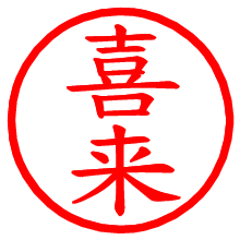 [朱肉の色]を選び、入力窓に“喜来”と入力して[生成]ボタンを押すと、印影が更新され、リンクから電子印鑑(デジタル印影)がダウンロードできます。 電子印鑑「喜来」の作り方文字表示が変なときや、文字バランスが悪いときは[字形切替]のチェックボックスでON/OFFを切り替え[生成]しなおしてください。 生成される画像は通常の印影「喜来.png」と、にじみを表現した少し太めの印影「喜来B.png」の背面透過PNG形式2種と、鮮明なPDF形式の印影「喜来.pdf」の計3種類です。 朱肉の微妙な色の違いを7色で表現しました。デフォルト(左端)は、JISが定めた朱肉の色のマンセル値(7.5R 5/14)をRGB値(217,66,54)に変換したものになっています。 「電子透かし」にチェックを入れて[生成]ボタンを押すと、タイムスタンプを電子透かしとして埋め込んだセキュアな電子印鑑が作れます。詳細は別ページの「タイムスタンプと電子透かし」でご覧ください。 喜来さんの日付印が作れます。「日付スタンプメーカー」は、社内向けの書類に利用されることの多い日付印(データ印)が無料で作れるWebアプリケーションです。中段に日付が入り、上段と下段は、ともに8文字まで文字が入ります。 ![]() 古代文字で落款印が作れます。「落款スタンプメーカー」で作品を引き立たせる落款印が作れます。
