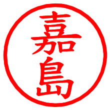 [朱肉の色]を選び、入力窓に“嘉島”と入力して[生成]ボタンを押すと、印影が更新され、リンクから電子印鑑(デジタル印影)がダウンロードできます。 電子印鑑「嘉島」の作り方文字表示が変なときや、文字バランスが悪いときは[字形切替]のチェックボックスでON/OFFを切り替え[生成]しなおしてください。 生成される画像は通常の印影「嘉島.png」と、にじみを表現した少し太めの印影「嘉島B.png」の背面透過PNG形式2種と、鮮明なPDF形式の印影「嘉島.pdf」の計3種類です。 朱肉の微妙な色の違いを7色で表現しました。デフォルト(左端)は、JISが定めた朱肉の色のマンセル値(7.5R 5/14)をRGB値(217,66,54)に変換したものになっています。 「電子透かし」にチェックを入れて[生成]ボタンを押すと、タイムスタンプを電子透かしとして埋め込んだセキュアな電子印鑑が作れます。詳細は別ページの「タイムスタンプと電子透かし」でご覧ください。 嘉島さんの日付印が作れます。「日付スタンプメーカー」は、社内向けの書類に利用されることの多い日付印(データ印)が無料で作れるWebアプリケーションです。中段に日付が入り、上段と下段は、ともに8文字まで文字が入ります。 ![]() 古代文字で落款印が作れます。「落款スタンプメーカー」で作品を引き立たせる落款印が作れます。
