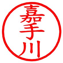 [朱肉の色]を選び、入力窓に“嘉手川”と入力して[生成]ボタンを押すと、印影が更新され、リンクから電子印鑑(デジタル印影)がダウンロードできます。 電子印鑑「嘉手川」の作り方文字表示が変なときや、文字バランスが悪いときは[字形切替]のチェックボックスでON/OFFを切り替え[生成]しなおしてください。 生成される画像は通常の印影「嘉手川.png」と、にじみを表現した少し太めの印影「嘉手川B.png」の背面透過PNG形式2種と、鮮明なPDF形式の印影「嘉手川.pdf」の計3種類です。 朱肉の微妙な色の違いを7色で表現しました。デフォルト(左端)は、JISが定めた朱肉の色のマンセル値(7.5R 5/14)をRGB値(217,66,54)に変換したものになっています。 「電子透かし」にチェックを入れて[生成]ボタンを押すと、タイムスタンプを電子透かしとして埋め込んだセキュアな電子印鑑が作れます。詳細は別ページの「タイムスタンプと電子透かし」でご覧ください。 嘉手川さんの日付印が作れます。「日付スタンプメーカー」は、社内向けの書類に利用されることの多い日付印(データ印)が無料で作れるWebアプリケーションです。中段に日付が入り、上段と下段は、ともに8文字まで文字が入ります。 ![]() 古代文字で落款印が作れます。「落款スタンプメーカー」で作品を引き立たせる落款印が作れます。